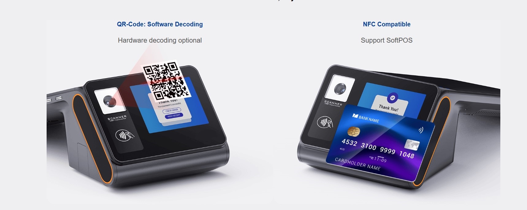 - SoftPOS: Kompatibilné s NFC a platbami QR kódmi, certifikované mobilnými službami Google (GMS)